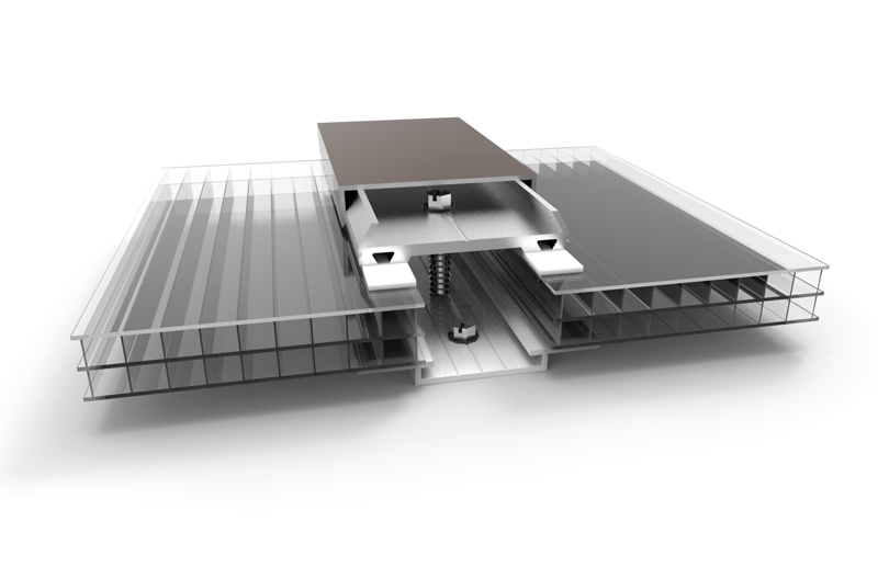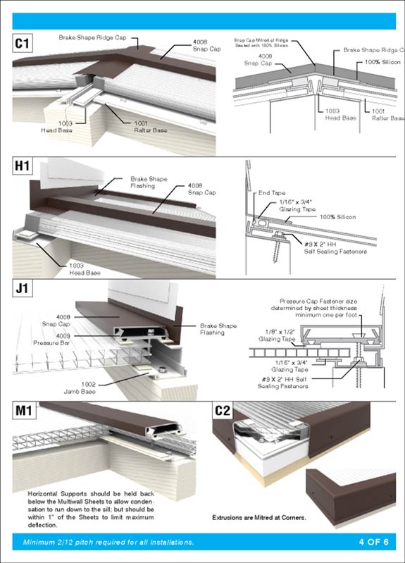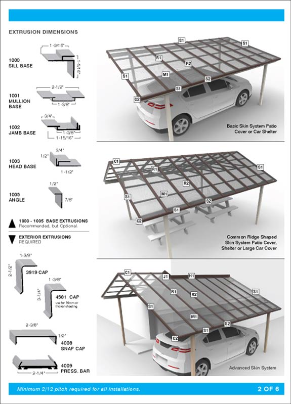 Skin Systems are created using extruded aluminum framing members to securely fasten polycarbonate multiwall sheeting for transparent overhead glazing.