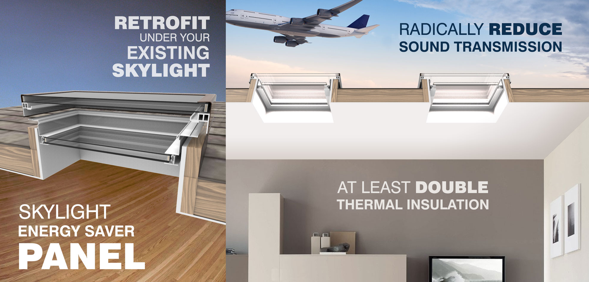 The ES Panel is a retrofit solution for existing skylights. Utilizing high performance glass and aluminum thermal-break drop-in frame design, it is estimated that it will at least double the thermal performance of most existing skylights! The ES Panel also blocks the heat-loss through the curb, which is otherwise uncontrolled by a skylight. Rethink simply replacing old skylights, instead enhance existing skylights with the ES Panel.